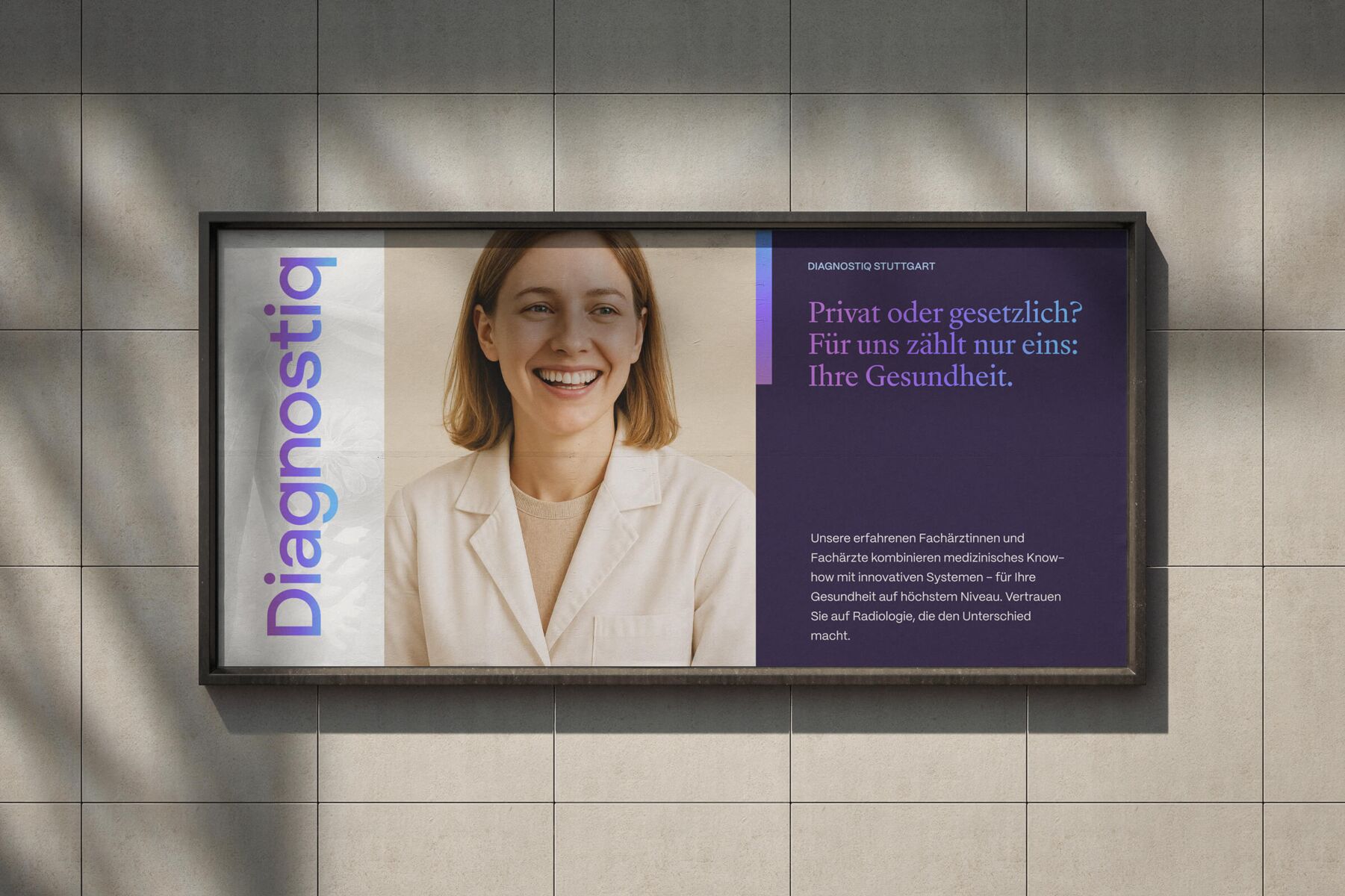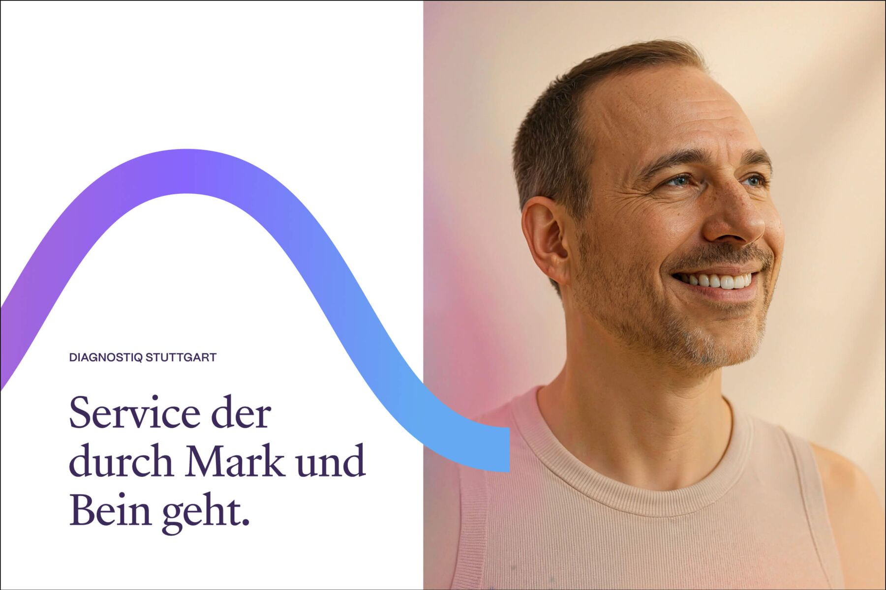 Alle kennen es, die schon mal im Wartezimmer ausgeharrt haben: Radiologie ist meist ein Raum der Distanz, geprägt von kühlen Geräten, nüchternen Wänden und einem Vokabular, das mehr verunsichert als Vertrauen schafft. Diagnostiq wollte genau hier ansetzen und eine neue Sprache finden, eine visuelle Identität, die Hightech-Medizin nicht als kaltes Instrument, sondern als verlässlichen Begleiter inszeniert. Im Fokus stehen Prävention und Diagnostik auf Augenhöhe – beides mit dem Ziel eines langen, gesunden Lebens.