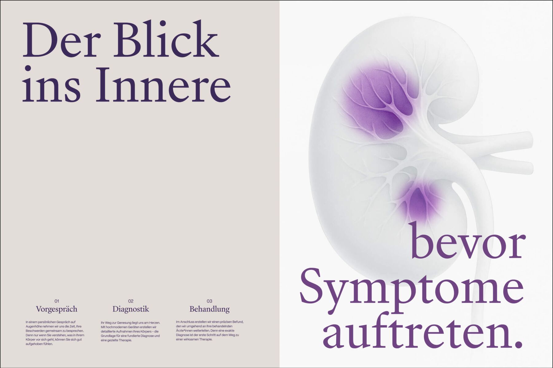 So entsteht eine Marke, die Radiologie anders erzählt. Sie löst sich vom Bild des kühlen Untersuchungszimmers und entfaltet eine Haltung, die Technik nicht leugnet, sondern sie menschlich rahmt. Das Corporate Design ist eine sichtbare Form von Identität und Kompetenz und beweist, dass Diagnostik mit Vertrauen und Wohlfühlen beginnt.