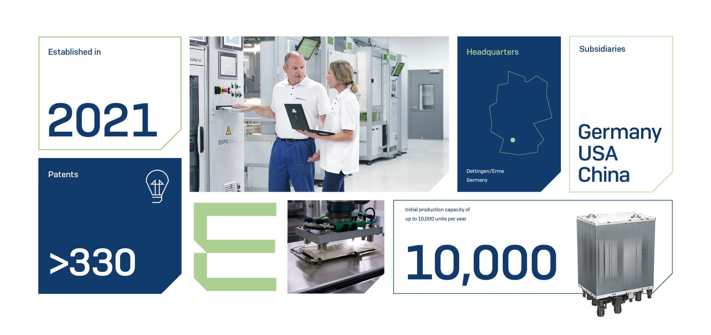 EKPO entwickelt und produziert komplette Brennstoffzellen-Stacks und Komponenten wie Bipolarplatten und Medienmodule. Diese kommen unter anderem in Pkw, Lkw, Bussen, Zügen, Schiffen sowie in stationären Systemen wie Elektrolyseuren und Generatoren zum Einsatz.