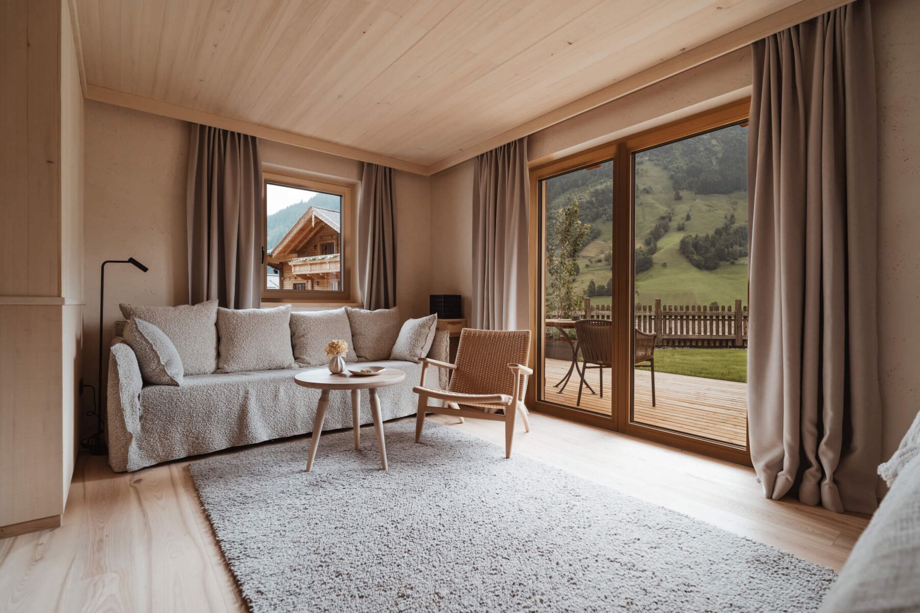Der Auftritt lebt von Raum. Großzügige Bildstrecken, zurückhaltende Typografie und ein ruhiger Rhythmus prägen die Seiten. Inhalte entfalten sich ohne Eile. Nichts drängt nach Aufmerksamkeit, die Seite wirkt wie ein langsames Ankommen, wie ein Weg durch Wiesen, Höfe und Räume, immer mit Blick auf die Berge.