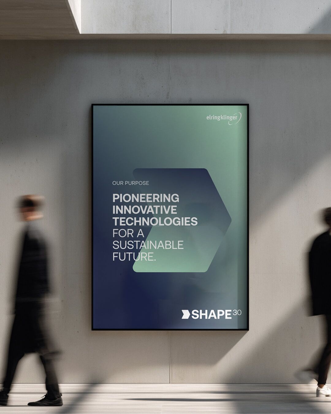Die visuelle Sprache der Transformation ist gesetzt. Wir sind sehr stolz darauf, dass wir unseren langjährigen Kunden ElringKlinger, mit dem wir seit über einem Jahrzehnt zusammenarbeiten, bei seinem Weg in die Zukunft unterstützen können. Gemeinsam haben wir einen richtungsweisenden Look kreiert, der SHAPE30 signifikant transportiert und intern über alle Standorte hinweg eine Identifikation für den Change-Prozess schafft.