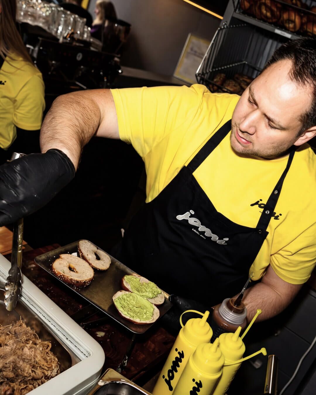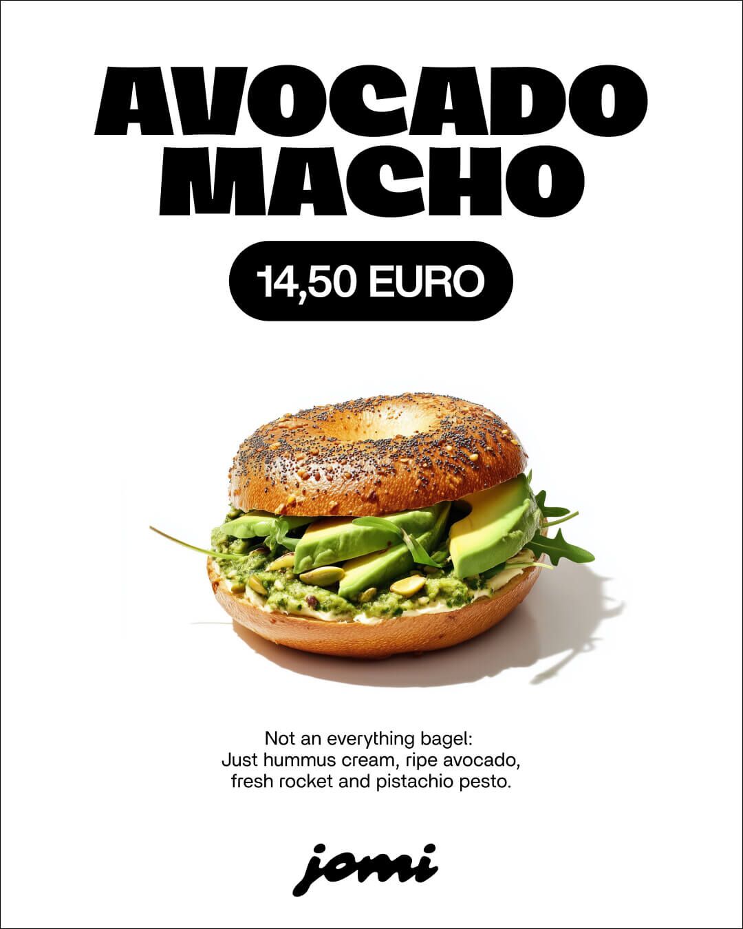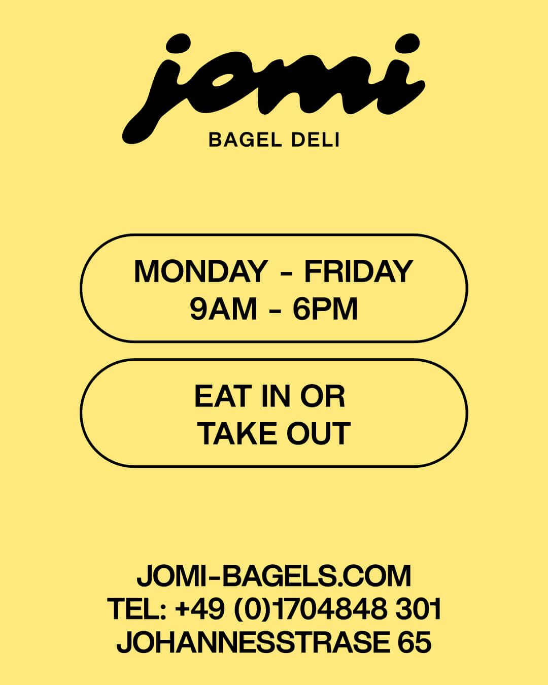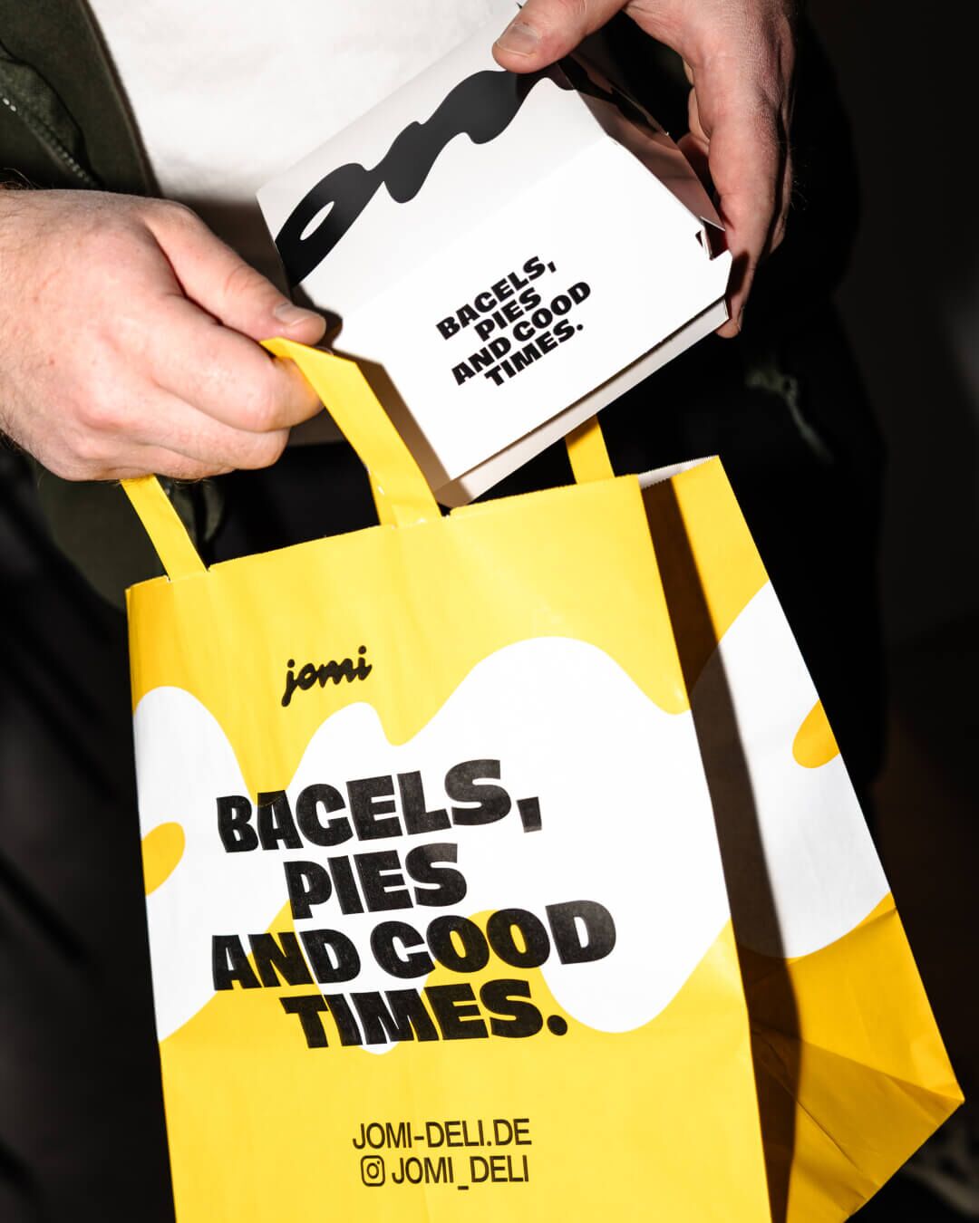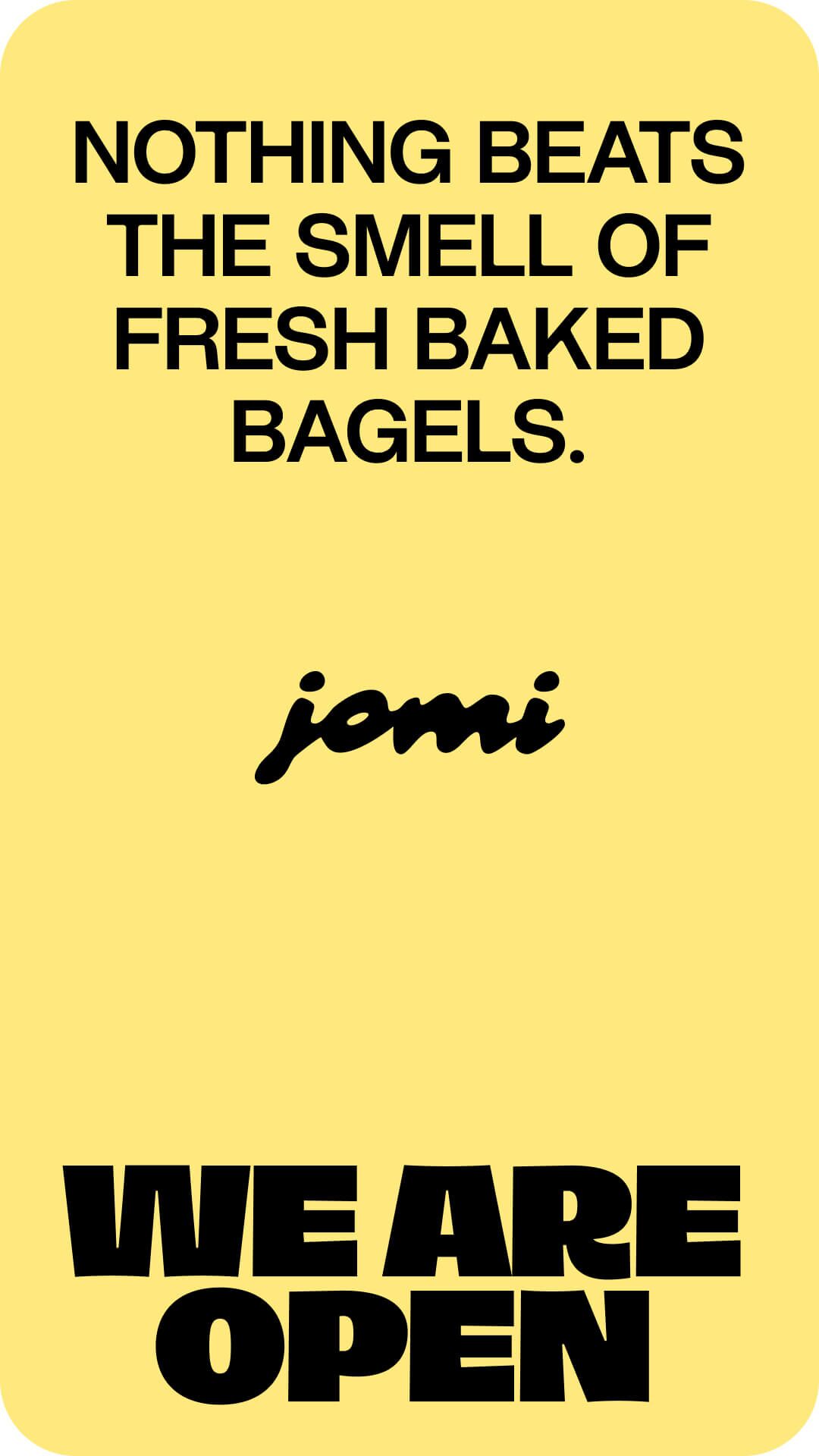 Illustrationen und KI-generierte Bildwelten erweitern die Tonalität und setzen Akzente, ohne den Fokus vom Produkt zu nehmen. Sie machen den Raum zwischen Bagel und Gast erlebbar, ein Raum, der nicht laut sein will, sondern ehrlich. In Social Media, auf Verpackungen, im Menü oder auf dem Fensterglas wird diese Sprache konsequent weitergetragen. Jomi bleibt dabei in jedem Format erkennbar, ohne sich zu wiederholen. Die Gestaltung kann flüstern oder erzählen, je nach Kontext.