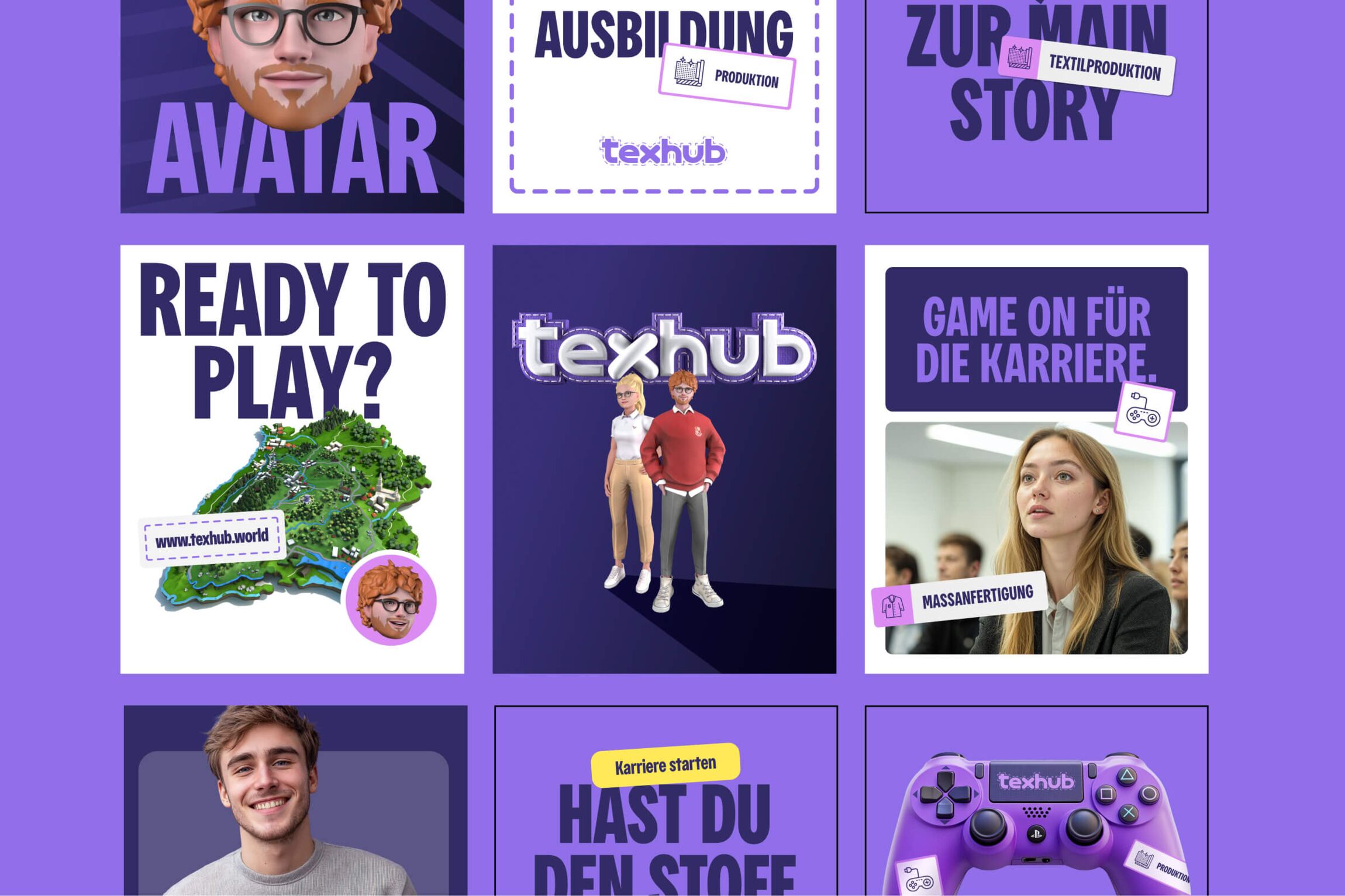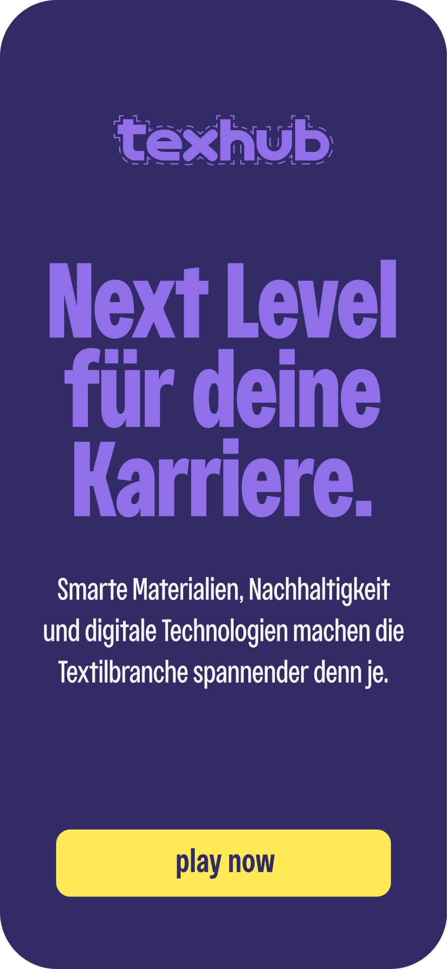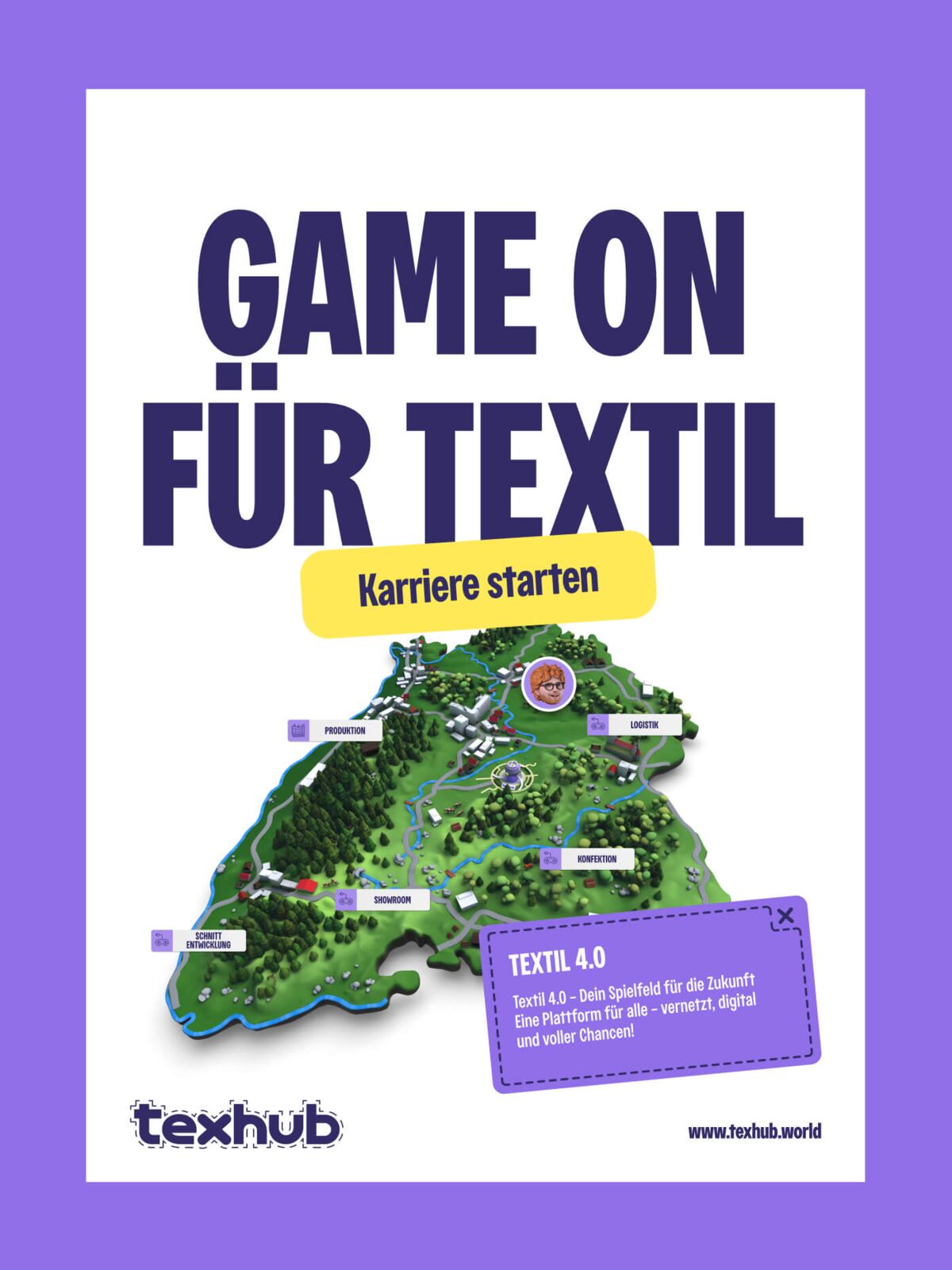 TEXHUB ist eine neue Marke von Südwesttextil, dem Verband der südwestdeutschen Textil- und Bekleidungsindustrie mit Sitz in Stuttgart. Die digitale Plattform verbindet E-Learning und Gaming und will mit diesem Ansatz (jungen) Menschen die Vielseitigkeit, Innovationskraft und Karrieremöglichkeiten der Textilbranche näher bringen - spielerisch, digital, leicht zugänglich. Recruiting 4.1. oder 9.7. oder 13.2., let’s go!