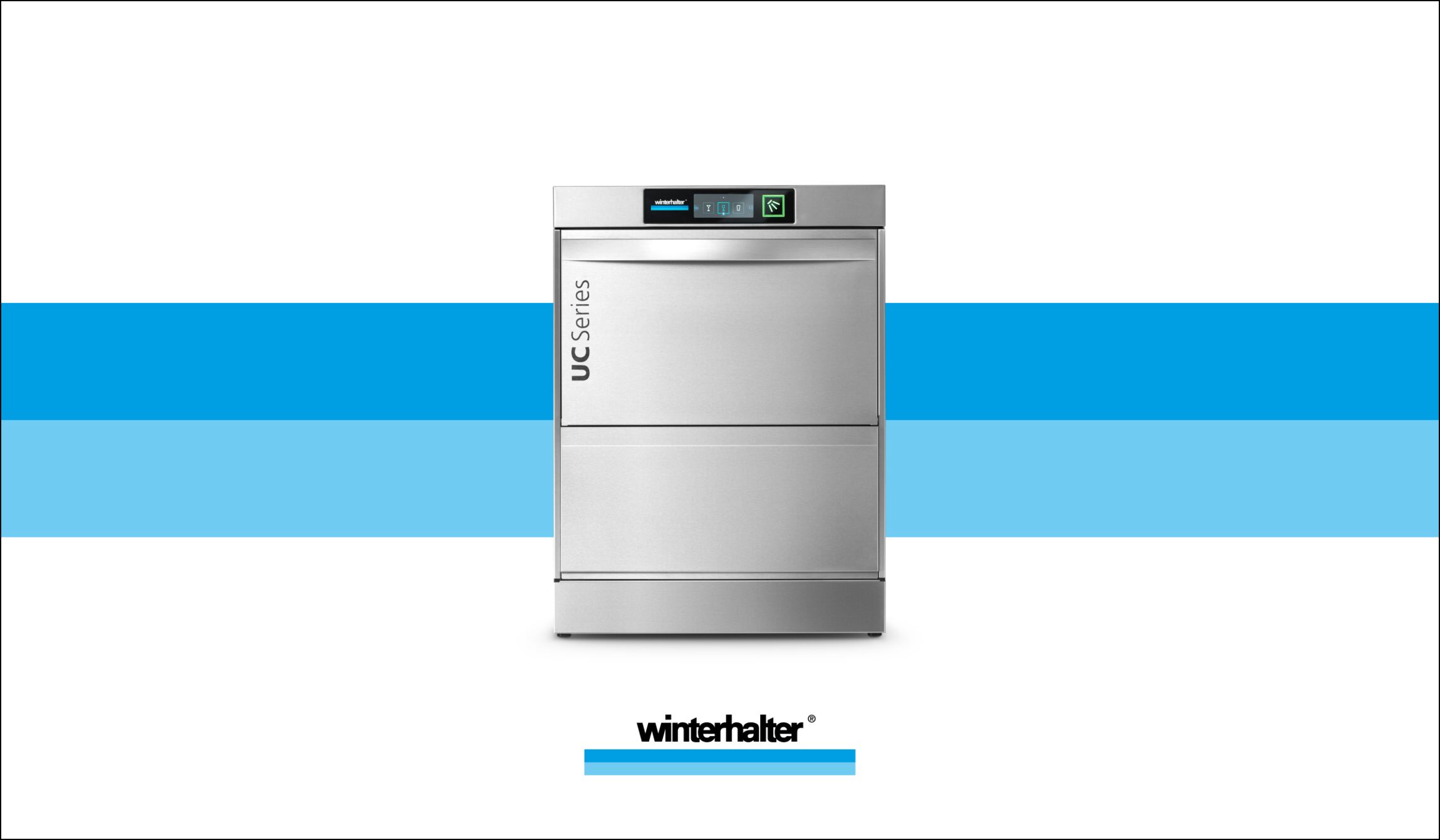 Hochburg hat dieses Fundament aufgenommen und scharf konturiert weiterentwickelt. Aus einer bewährten Designsprache wurde ein System, das die Qualität und technische Stärke von Winterhalter spürbar übersetzt. Das charakteristische Blau erhielt Tiefe und Leuchtkraft, die Stripes wurden zu einem verbindenden Element, das über alle Medien hinweg Orientierung und Bewegung schafft. In der Typografie verschmelzen Struktur und Wärme, ein klarer, reduzierter Copyfont trifft auf eine zweite, die den kommunikativen Ton veredelt und erdet.