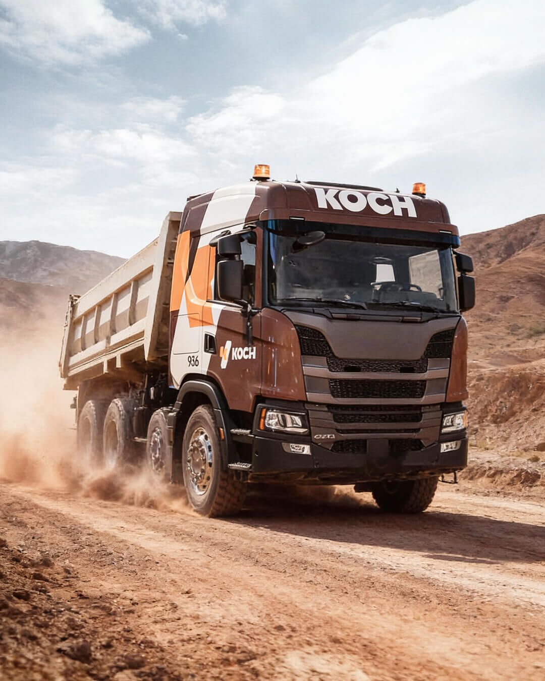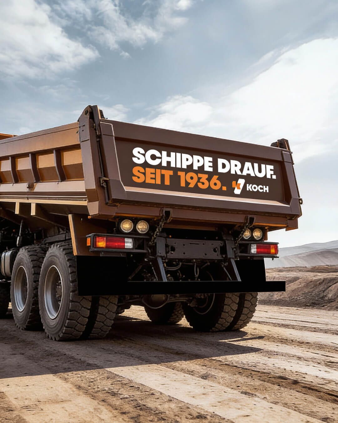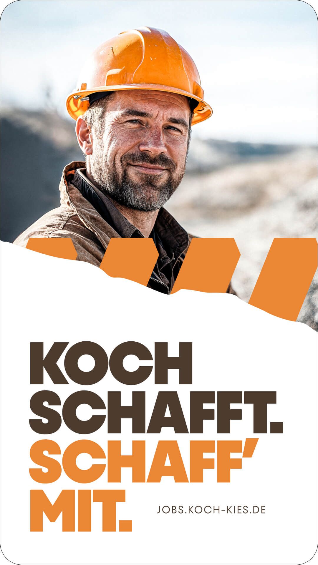 Die Bildwelt übernimmt eine entscheidende Rolle. Statt generischer Hochglanzoptik zeigen wir, was KOCH wirklich definiert: Maschinen in Bewegung, Menschen bei der Arbeit, Baustellenatmosphäre pur – staubig, roh, kraftvoll. Die Perspektiven sind nah dran, die echten Szenen zeigen Haltung und wecken Emotionen. Beim Wording dringt ebenfalls eine klare Mechanik durch, direkt, bodenbetoniert, ehrlich: kurze, prägnante Headlines mit Wiedererkennungswert. Aussagen wie „KOCH liefert“, „KOCH stemmt“, „KOCH schleppt“ bringen die Leistung des Unternehmens auf den Punkt.