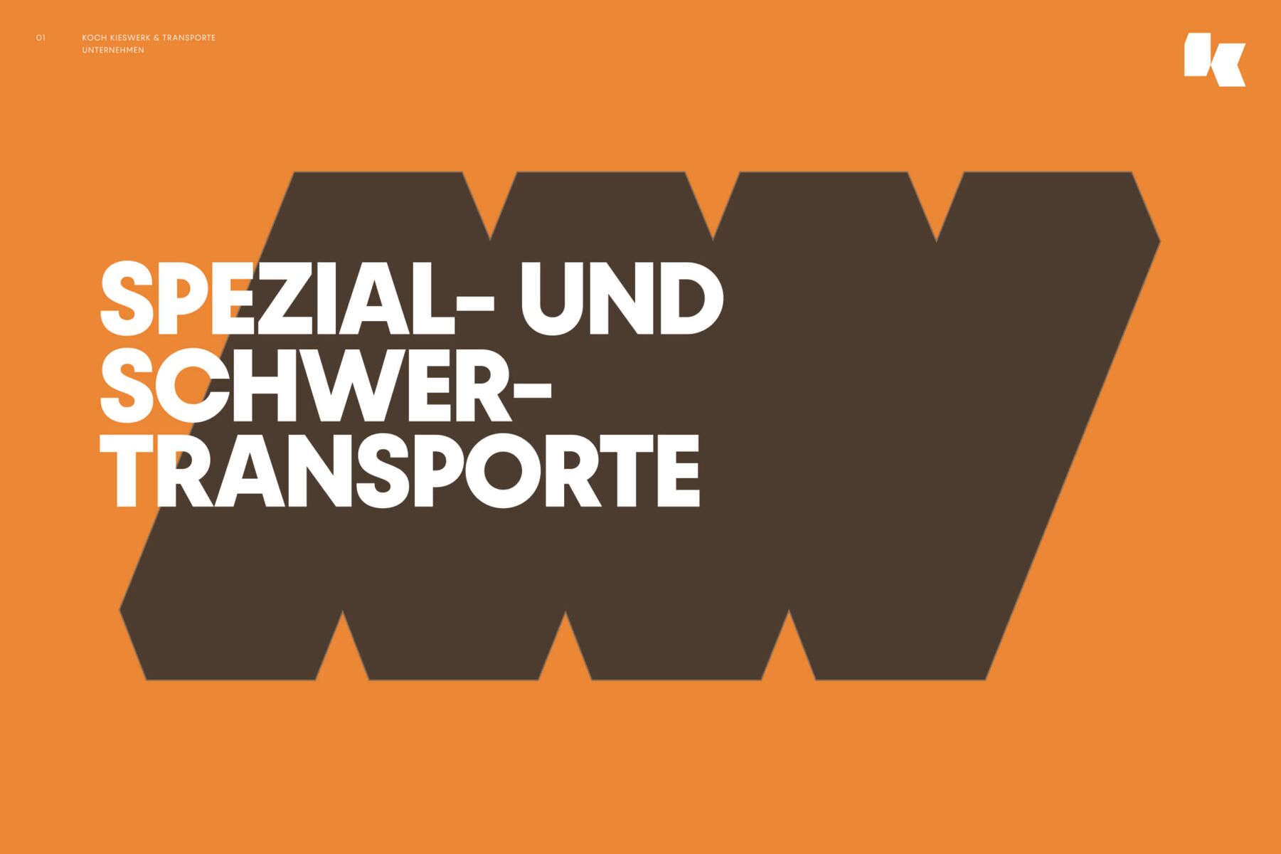 Die Basis der Brand und der Kommunikation bilden der bisherige Farbmix. Deswegen wurden das Orange und Braun nicht ersetzt, sondern bewusst geschärft. Braun wurde in ein dunkles, materialinspiriertes Grau („KOCH Erde“) übersetzt, das die industrielle Stärke und Bodenständigkeit des Unternehmens unterstreichen. Das Orange bleibt als markanter Akzent erhalten und setzt ein Signal für Energie und Wiedererkennung.